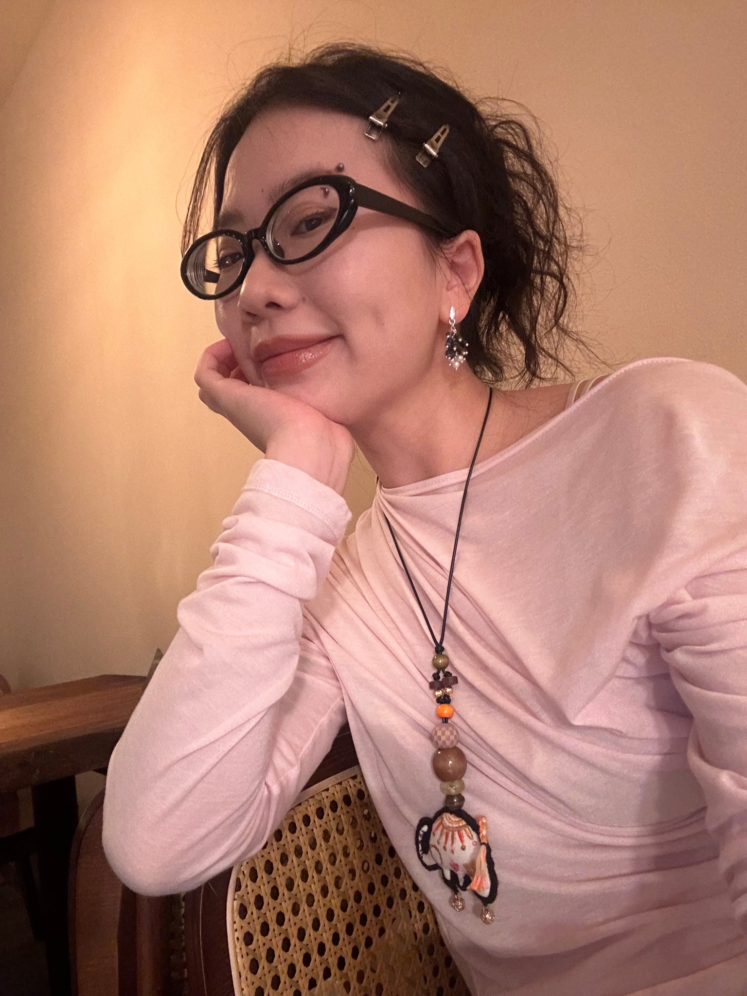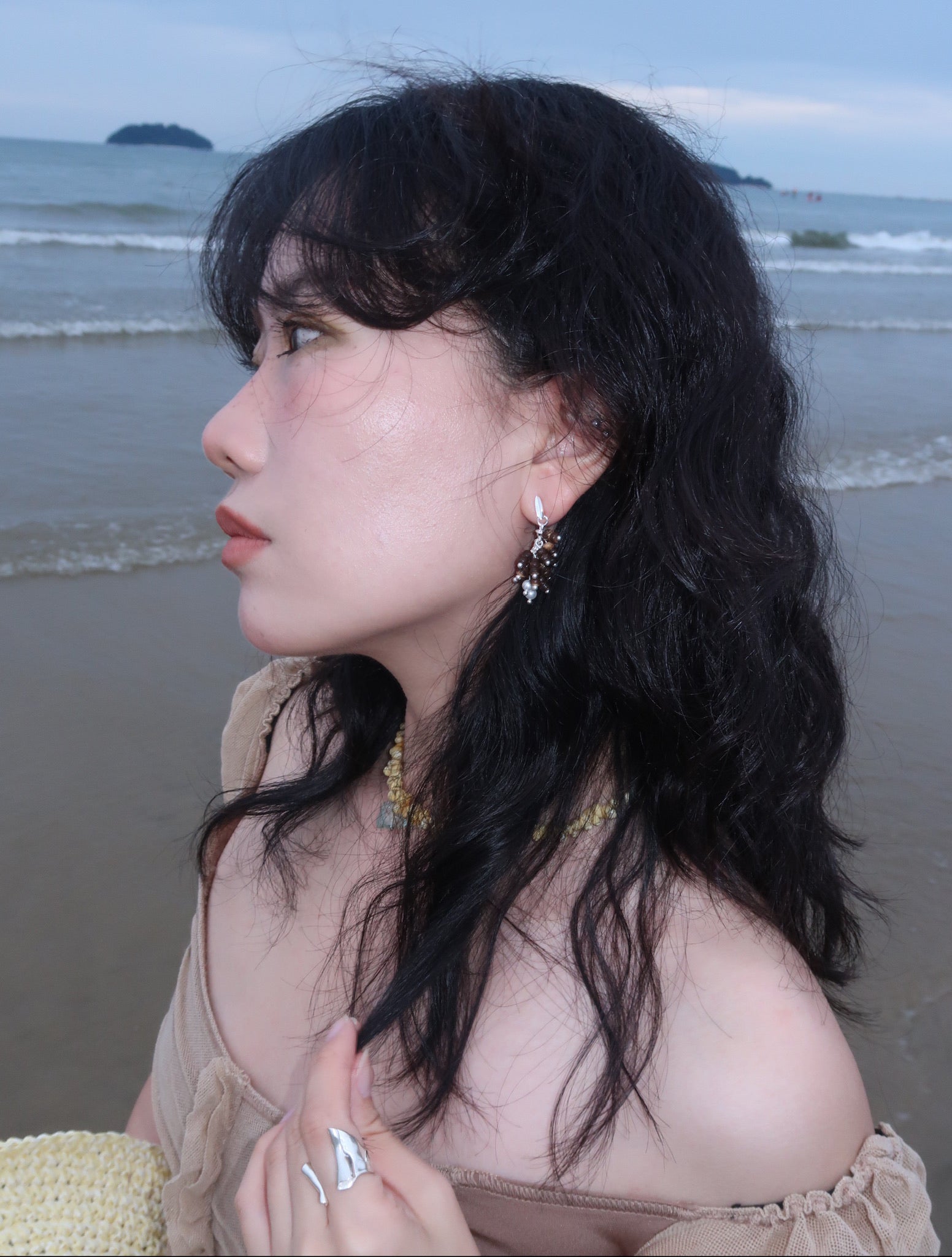 材质:耳钉、链条为纯银,钩针为铜镀银,天然贝珠加都壳珠耳环刻有徽标